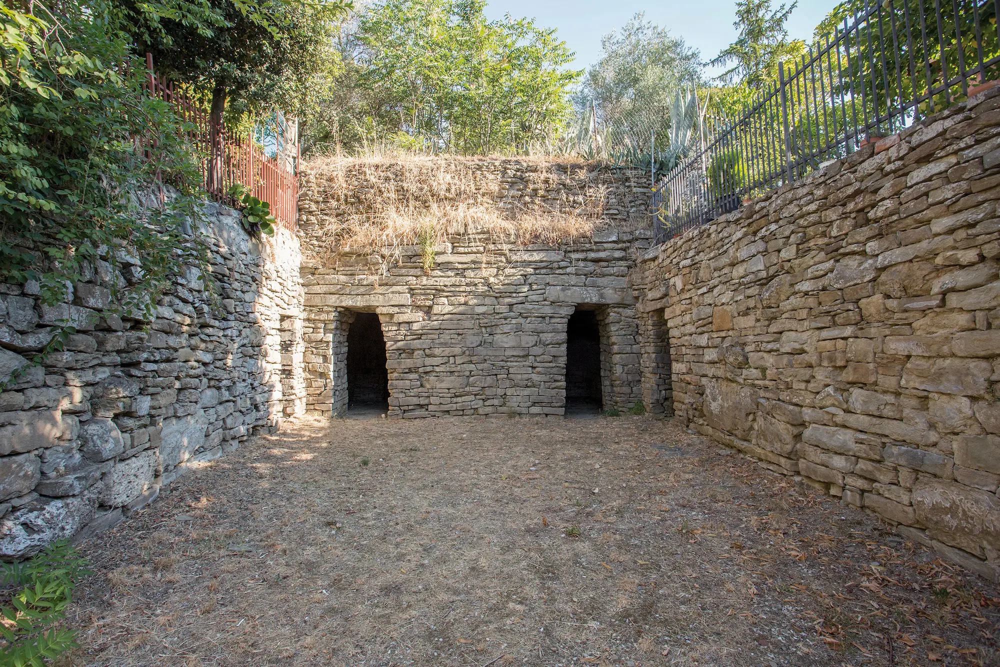 The structure had a massive drum and a hemispherical covering made of stone chips, covered with a layer of clay and fill earth that made it resemble a small hill. Inside, two multi-chambered tombs were discovered.