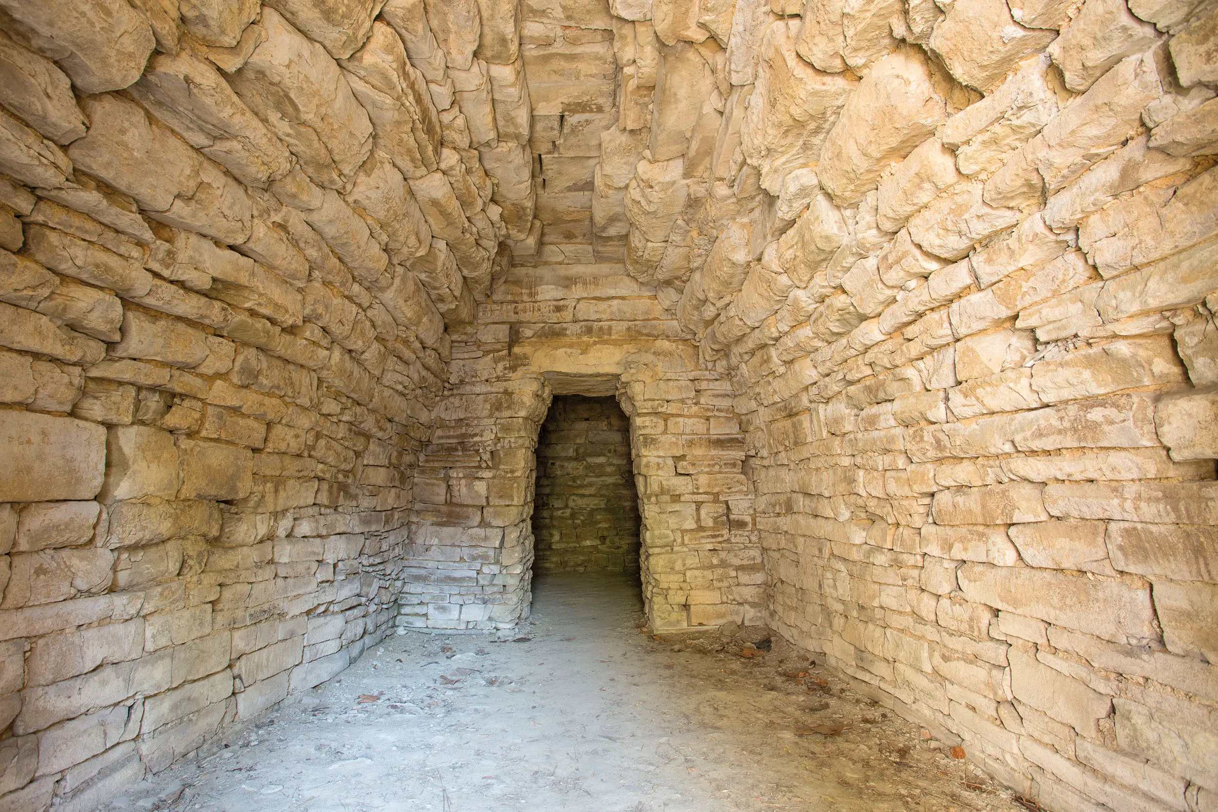 Tomb A consists of a long corridor leading to a vestibule covered by projecting vaults. On the sides of the vestibule open two single small chambers, while at the front develops the central body with two bipartite chambers. All the chambers are covered by projecting pseudo-vaults closed at the top by horizontal slabs.