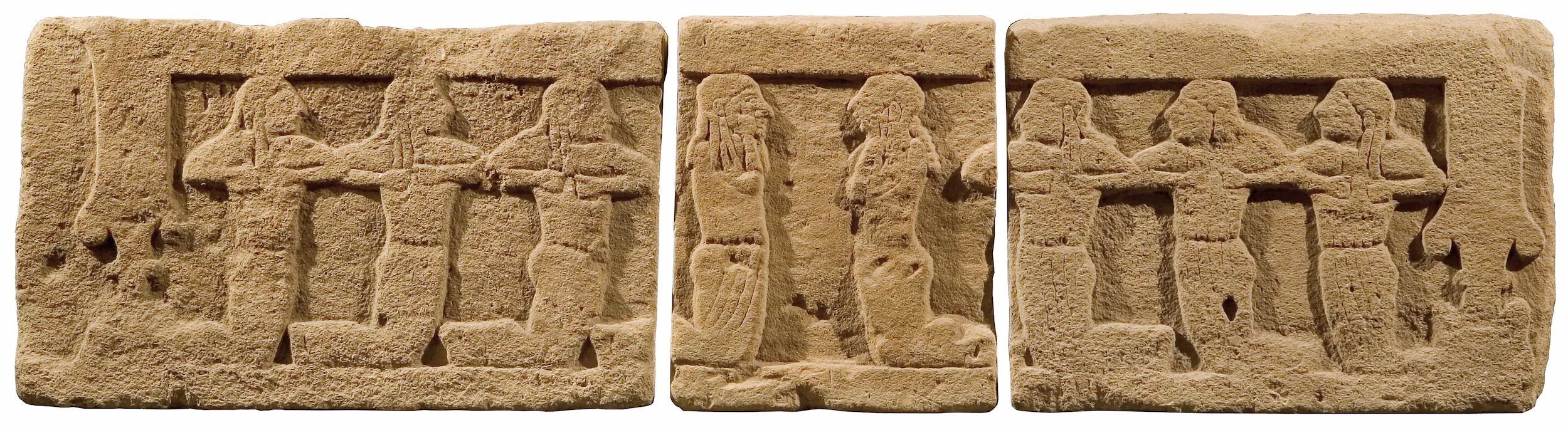 Among the most significant finds from the tomb stands out a funerary bed composed of three blocks of tufa placed side by side on shaped legs. Its frontal decoration, in low relief, presents a scene of funerary lamentation. Eight kneeling female figures follow one another: the two central figures cover their faces with their hands, while the lateral ones beat their chests. The figures are stylistically akin to those of the relief-decorated cippi produced by the workshops of Chiusi in the second half of the 6th century BC. The bed assumes particular significance, illustrating, among other things, some distinctive aspects of funerary cults in Etruria during this period.
