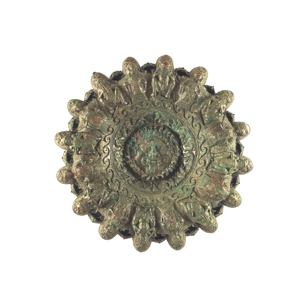 Lampadario etrusco in bronzo del IV sec. a.C., decorato con motivi mitologici e naturalistici.