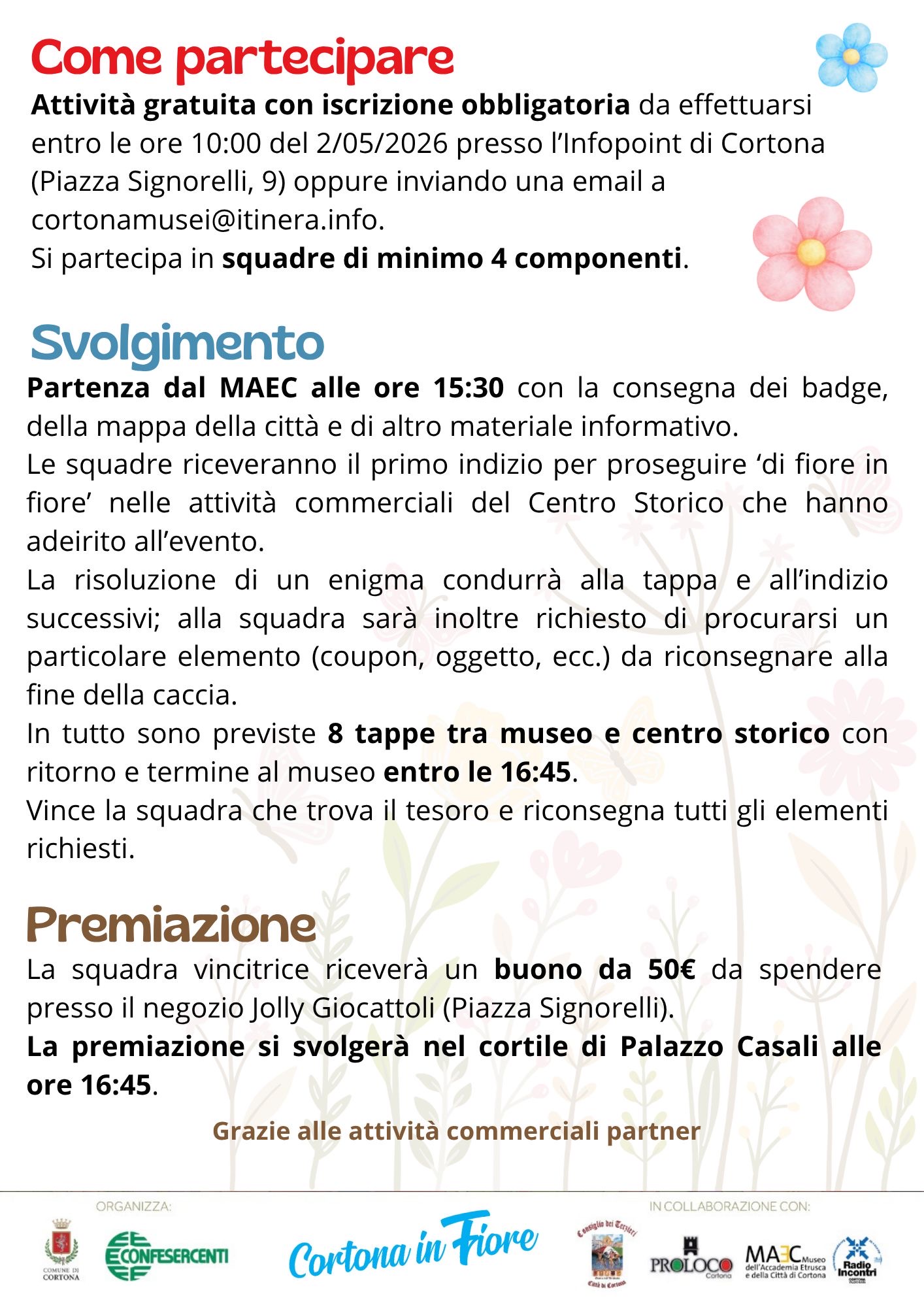 - oppure via email a: cortonamusei@itinera.info