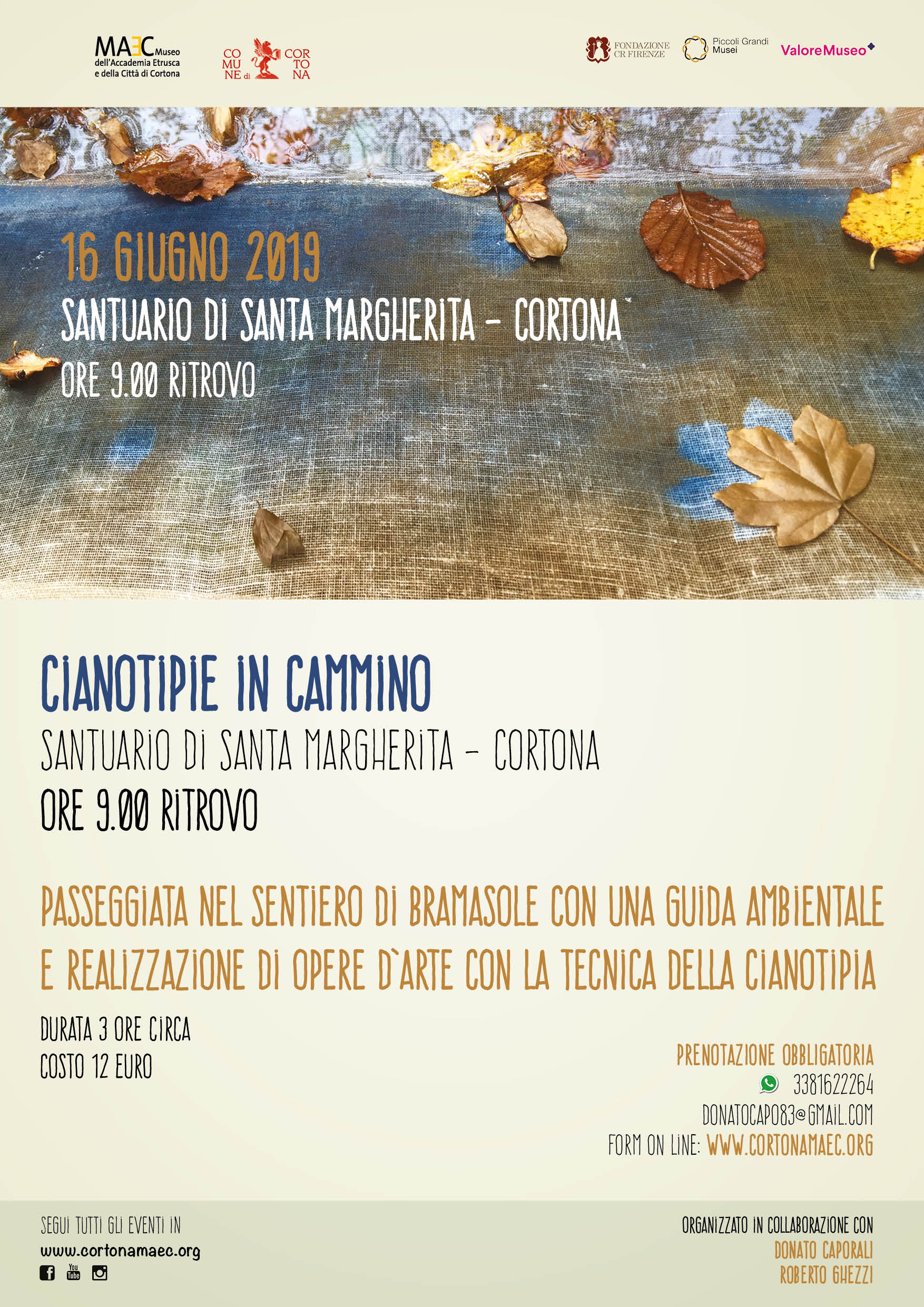 Lungo il percorso, l’artista cortonese Roberto Ghezzi ci farà sperimentare la realizzazione di opere d’arte attraverso la tecnica della cianotipia.