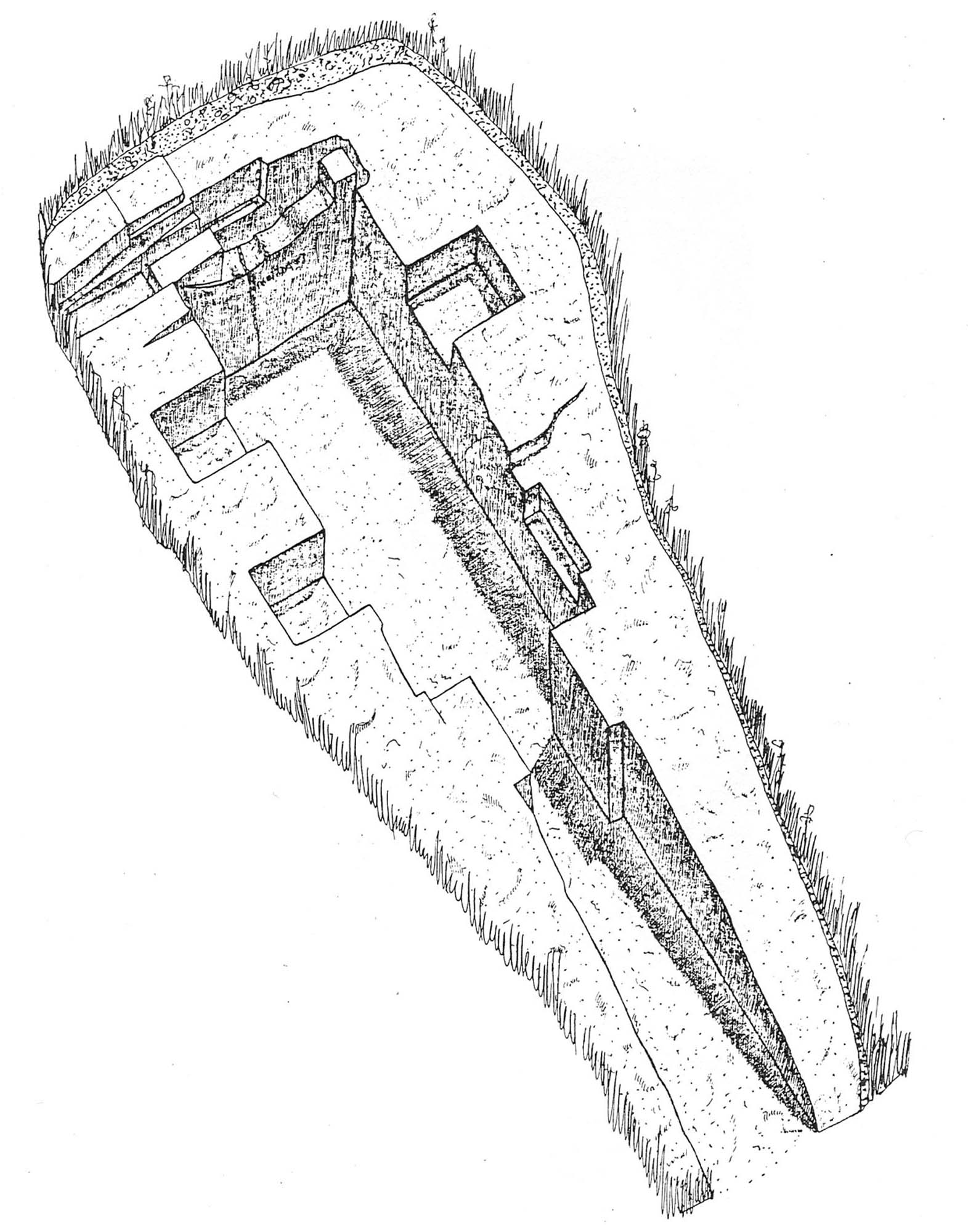 La parte superiore, del tutto mancante, era costruita in pietra arenaria locale. Non è stato restituito alcun residuo di suppellettile; questo elemento, unitamente all’iscrizione solamente parziale, potrebbe far supporre un crollo della tomba poco dopo la sua realizzazione e quindi un suo mancato utilizzo. Elementi comuni con le tanelle ellenistiche, la presenza del rito incineratorio, la disposizione dei loculi e soluzioni raffinate come l’inserimento della parete di fondo, realizzata con una lastra incastrata fra le pareti laterali, portano ad ipotizzare una cronologia compresa fra la fine del III e gli inizi del II sec. a. C. in concomitanza con la grandiosa evoluzione urbanistica e sociale della città, ormai avviata verso la completa romanizzazione.