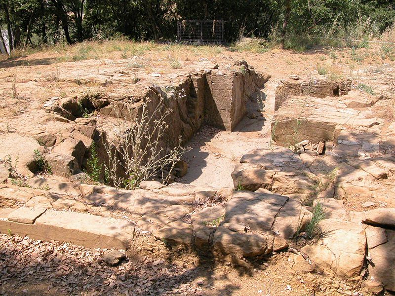 Dal terreno di riempimento della tomba proviene una lastra di arenaria con iscrizione onomastica incisa al margine del perimetro, arnt p[e]tkes : veinal probabilmente riferita al proprietario del fondo . Nel corso di recenti saggi di ripulitura è stato individuato, a fianco della tomba, un dromos forse riferibile ad un primo tentativo poi non concluso di realizzare un’altra tomba e un monolite forse utilizzato quale segnacolo della tomba stessa.