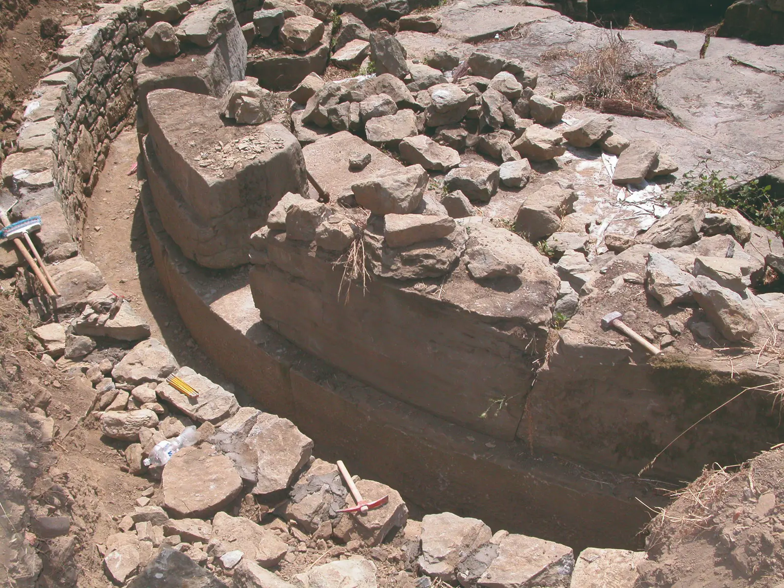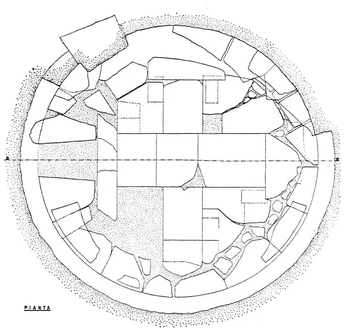 Durante lo scavo della tomba furono rinvenuti anche una serie di cinerari di età villanoviana, tracce queste dell’esistenza di una necropoli più antica ricoperta dalla realizzazione del monumento funerario in età ellenistica.