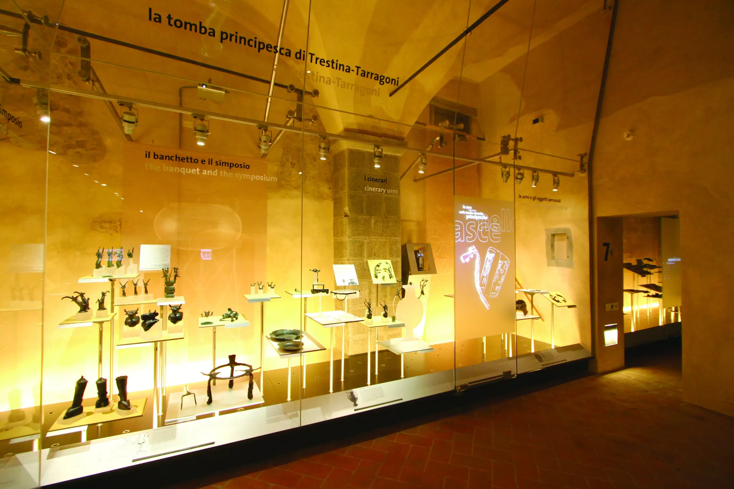 Tra i materiali esposti spiccano raffinate oreficerie e testimonianze legate ai rituali funerari e al culto dei defunti. Di grande interesse è anche la presentazione dei corredi, di recente recupero, appartenenti a una serie di tombe orientalizzanti a circolo, che offrono nuove e suggestive prospettive sulla fase più antica della storia cortonese.